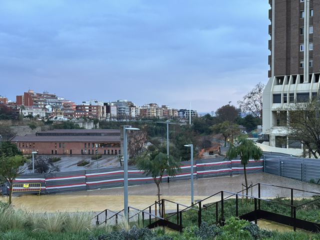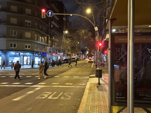 直到此时我仍未真正反应过来自己已经在西班牙,只觉得是在一个充满拉丁字母的地方。那种感觉真正显现出来是从Collblanc地铁站出来的时候地上湿漉漉的泛着水光的街道,和路边说着加泰语(还是西班牙语)的行人,以及和巴黎比起来平庸很多的建筑,毕竟那里已经是郊区了。扶着行李箱在公交车站等着,我们目睹开走一辆辆终点是Ernest Lluch的车。一个女人安静地坐在候车亭里,和我们一样等了很久。
