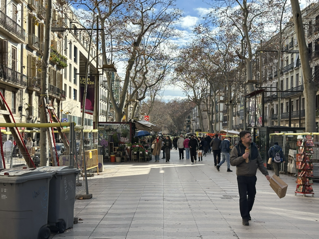 下了飞机,我们便开始被西班牙语和加泰罗尼亚语覆盖。众所周知巴塞罗那当然是说加泰语。机场地铁都以加泰语为第一语言。这导致我们后来到马德里一下子没有反应过来“出口”这个词为什么写作“salida”而不是“sortida”,而后者和法语非常类似。我开始担心我的行李箱。一是怕被偷,二是怕它还在巴黎,三是怕它甚至还在上海。但我们在巴黎机场和Air France的工作人员说时,他回答我们说没有必要等待行李,它会直接托运到巴塞罗那。不过很快我就看到了我的行李。