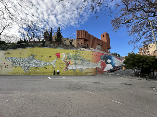 Ernest Llunch,这个地名在我们一落地巴塞罗那就看到了不少次。从机场线出来在那儿边等公交边看对面楼上小孩画画的公交站,驶过许多辆公交车的终点站都是Ernest Llunch。我们看着西班牙的街道,但并没有觉得太新奇,因为我的感觉早已经被早上的巴黎冲击得十分透彻了。
