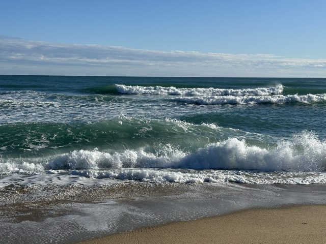 在飞机上坐左手边窗边的男孩看起来像是西班牙人,因为他并不会说法语。他的耳朵上打着大大的耳洞,里面塞着一个小盘子一样的东西。他一直在看书,大概是一本侦探或者是玄幻小说。坐在我右手边的则是穿着瑜伽裤的矮矮的女人,但完全看不出来是哪儿的人。那时我已经困得头痛,但也只能闭着眼睛听音乐,同时回复C小姐的消息。飞机好像很快就到了,过不了多久我就看到了蓝色的海,还有一些红色的小房子。我知道西班牙就是在我眼前了。在早上刚刚到戴高乐机场似乎也是这样的感觉,但当时只是看到了几束光,毕竟落地时天还没有亮。